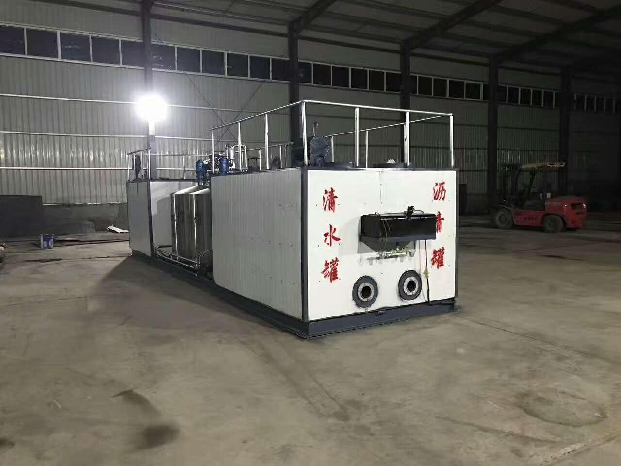 3、打開水箱,瀝青中轉(zhuǎn)罐導(dǎo)熱油閥門,加熱水時注意觀察,瀝青溫度推薦130℃—140℃之間,水溫度在65℃—70℃之間。
